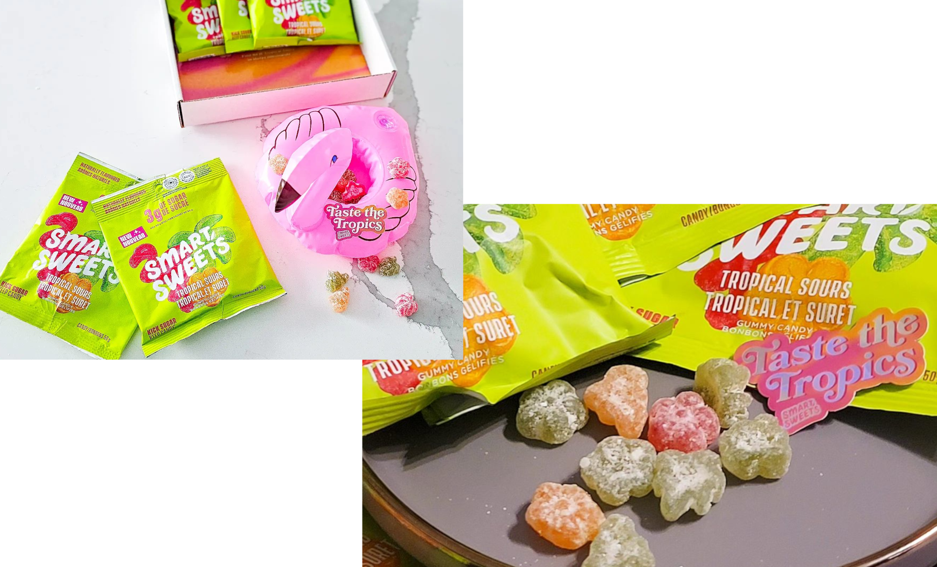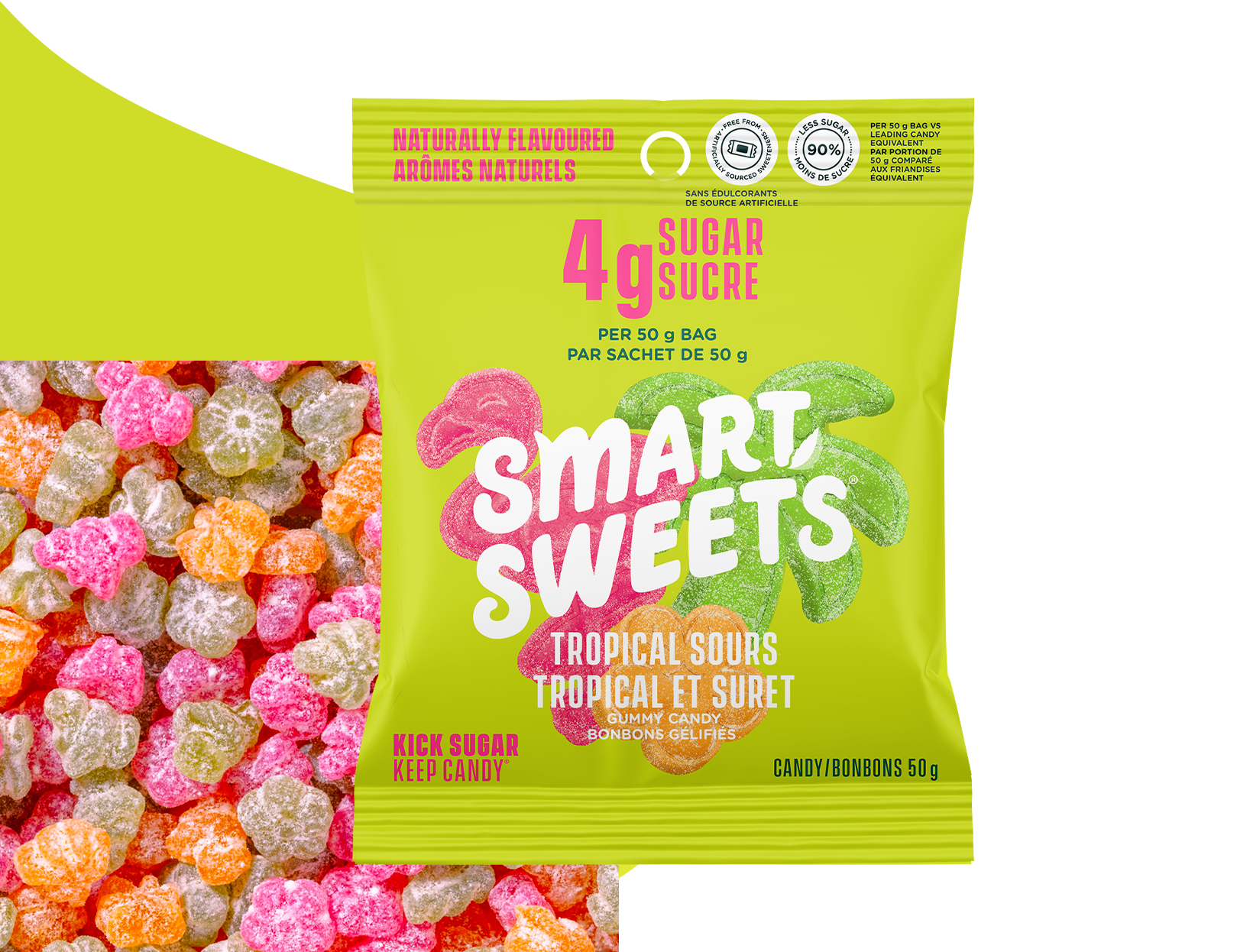 *SmartSweets Tropical Sours 50 g par rapport aux principaux bonbons traditionnels équivalents
