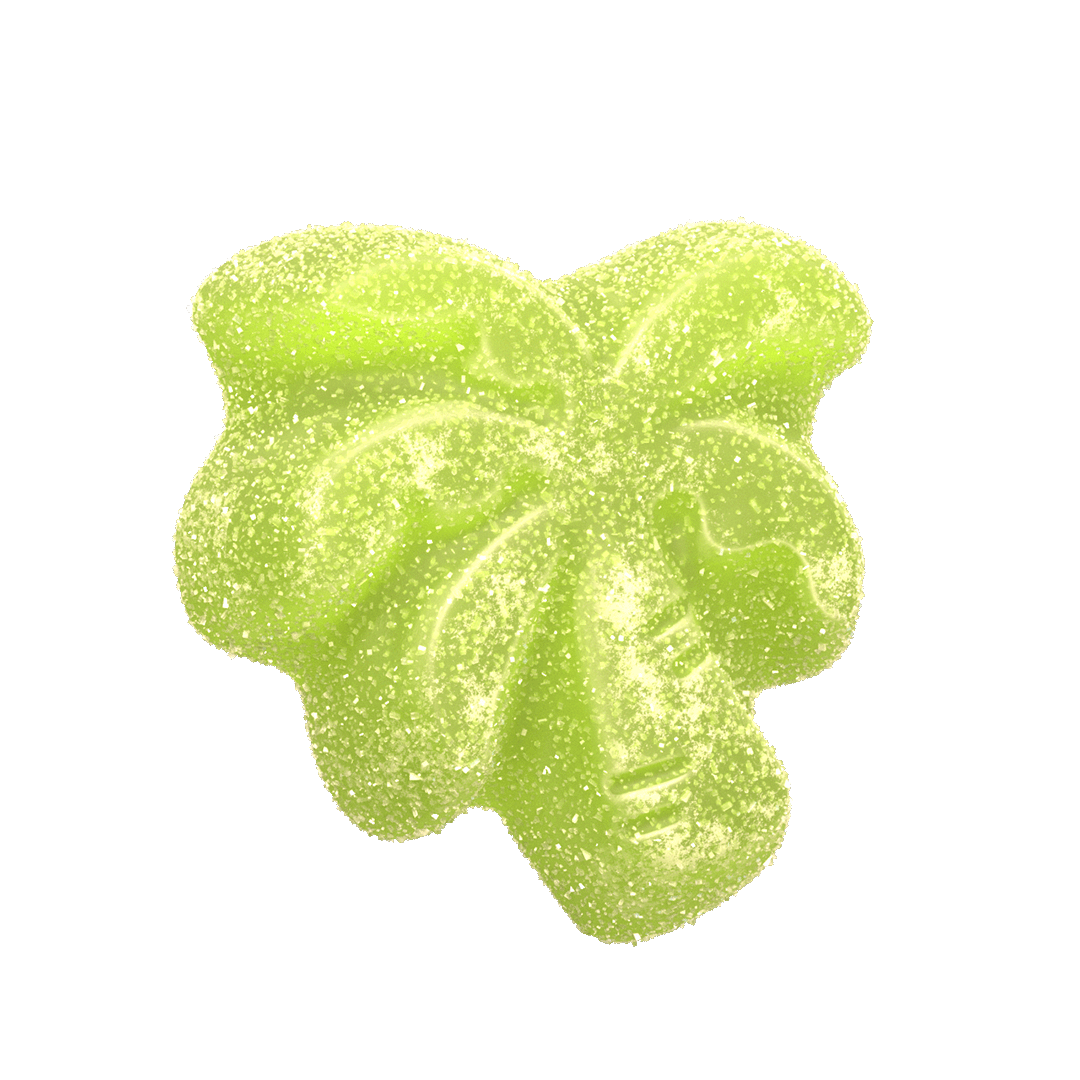 Ingrédients : Isomalto-oligosaccharides (source végétale), Fibre de racine de chicorée, Eau, Amidon de pomme de terre modifié, Farine de riz, Pectine, Acide malique, Acide citrique, Acide lactique, Acide fumarique, Extrait de feuille de stévia, Préparation de carotte, citrouille, pomme et cassis (pour la couleur), Extrait de spiruline (pour la couleur), Arômes naturels, Cire de carnauba, Huile de coco modifiée.