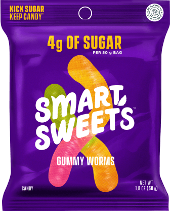 *SmartSweets Gummy Worms 50g versus leading traditional candy equivalent