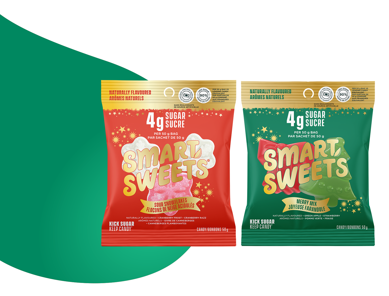 90% less sugar per 50g vs. leading traditional candy equivalent