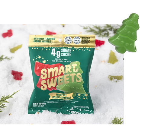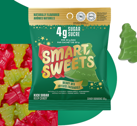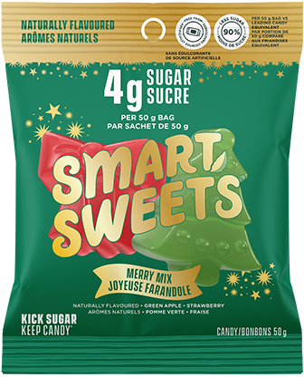 *SmartSweets Merry Mix 50g versus leading traditional candy equivalent