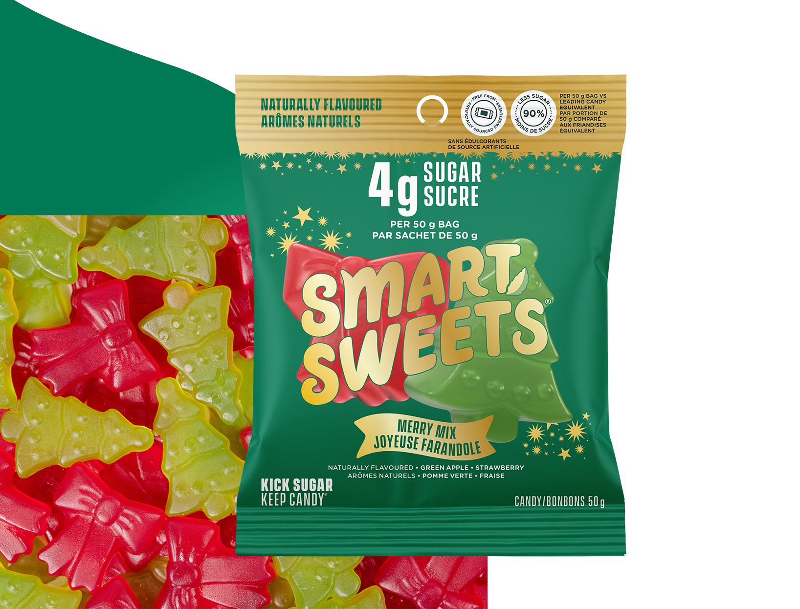 Sweet and juicy with a festive twist, Merry Mix comes with two fruity flavours per bag: Green Apple and Strawberry.