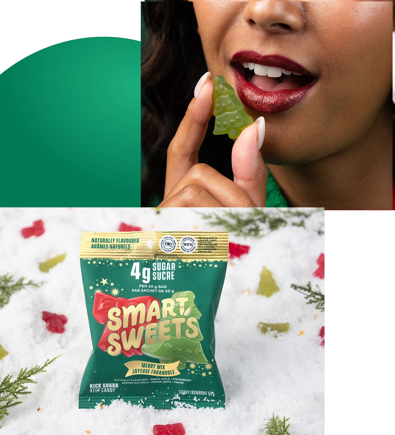 90% less sugar per 50g vs. leading traditional candy equivalent