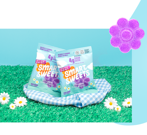 *SmartSweets Sour Flowers 50g versus leading traditional candy equivalent