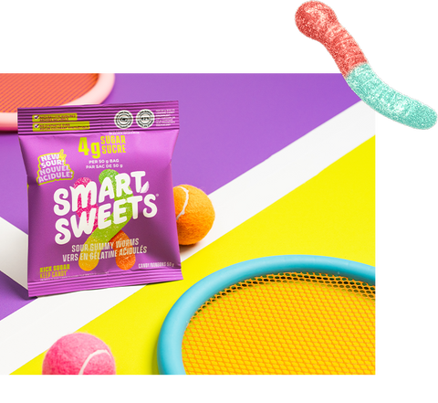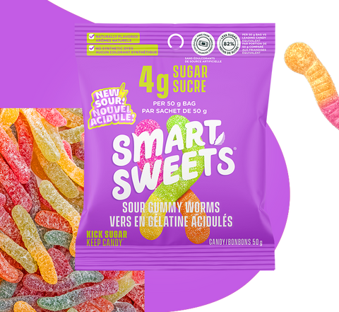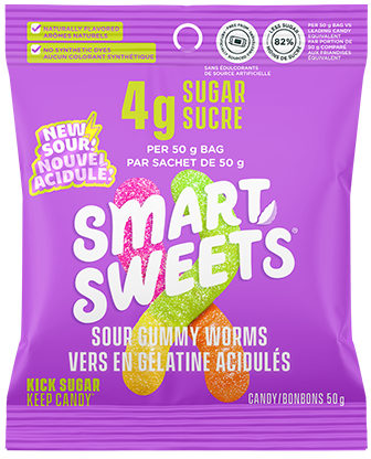 *SmartSweets Sour Gummy Worms 50g versus leading traditional candy equivalent