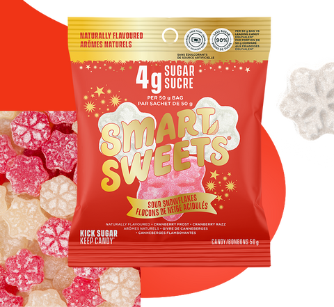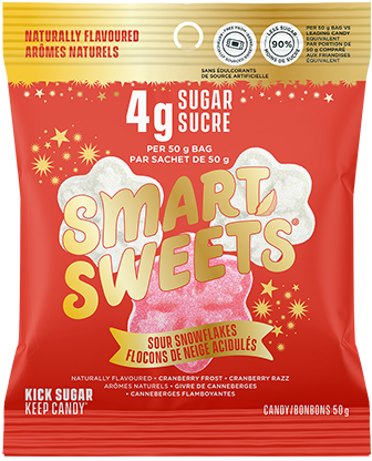 *SmartSweets Sour Snowflakes 50g versus leading traditional candy equivalent
